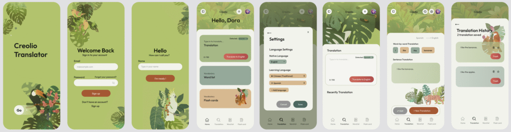 專案背景|語言翻譯與學習輔助軟體 把語言學習,變成一場文化與理解的探索 本專案由工程背景的主持人發起,目標建立一款結合「即用即走」翻譯功能與「延伸學習」體驗的語言工具。主要使用族群為高中、大學至成人學習者,定位為「隨時可使用的學習型翻譯輔助」,不同於需要每日連續打卡的學習型 App,也有別於僅提供即時結果的純翻譯工具。產品核心概念是在翻譯流程中加入理解與記憶的設計,例如單字熟悉度標記、模糊顯示翻譯結果以引導思考,並結合母語與學習語言設定,讓使用者在實際使用中逐步累積語感與學習紀錄。 設計角色與貢獻 UX 設計與主持人討論產品定位與核心訴求釐清翻譯與學習並行的使用情境與功能重點分析市面翻譯與語言學習產品的優缺點,作為架構與互動設計依據規劃不同功能頁的資訊架構與流程(翻譯、單字理解、學習紀錄)UI 設計定義整體視覺風格與產品調性設計 UI 元件系統與版面配置規劃插畫風格方向(冒險叢林 × 動物意象),連結「語言探索」的品牌概念設計交付與協作於 Figma 中建立 Autolayout 與元件規範,確保設計可順利轉換為程式碼與工程端溝通 RWD 與實作細節,持續依需求調整設計正在進行插畫元件繪製與視覺細節優化 問題分析與產品洞察 透過討論需求並分析市面上的翻譯與語言學習工具,歸納出以下關鍵洞察:學習型 App 多半偏向兒童或強烈遊戲化對成人與進階學習者而言,過於可愛或逼迫每日使用的設計反而造成心理負擔。純翻譯工具缺乏學習脈絡使用者能得到結果,但難以累積語感或理解單字熟悉度。學習工具應具備「隨取隨用」的彈性使用者希望它像 handy 工具,在需要時自然而然出現,而非打亂日常節奏。資訊呈現需避免一次給太多翻譯與學習過程若同時顯示大量資訊,易造成理解壓力。 設計策略與關鍵決策 視覺與情緒設計以「冒險叢林」與動物意象作為插畫與視覺主題,象徵語言探索與文化冒險。避免過度童趣的卡通風格,保留成熟使用者也能接受的比例與線條。元件與互動原則主要行為按鈕採用高對比橘色,次要行為使用灰階,清楚區分操作層級。控制圓角幅度,避免玩具感,但保留適度柔和以提升親和力。確保按鈕尺寸與點擊區域符合行動裝置使用情境。 資訊呈現與操作流程翻譯流程遵循使用者思考順序,避免在單一畫面中放入過多操作選項。視內容長度動態調整卡片或整頁顯示,提升閱讀舒適度。翻譯結果採用模糊顯示設計,鼓勵使用者先思考再揭露答案。學習輔助設計以顏色區分單字熟悉度(懂 / 不懂),符合整體介面色彩系統。設計可延展的結構,因應未來 AI 紀錄學習狀態與社群 Bot 整合。 成果與回饋 完成主要功能 UI 與元件系統設計,支援不同裝置尺寸顯示持續配合工程端開發進度進行設計調整與擴展於新創展示活動中,獲得參觀者對整體視覺與操作體驗的正向回饋主持人也回饋本次設計是能讓產品學習體驗「具體化並變得有生命力」的重要一環,目前正持續深化插畫與功能細節。 去看看網站 🔍