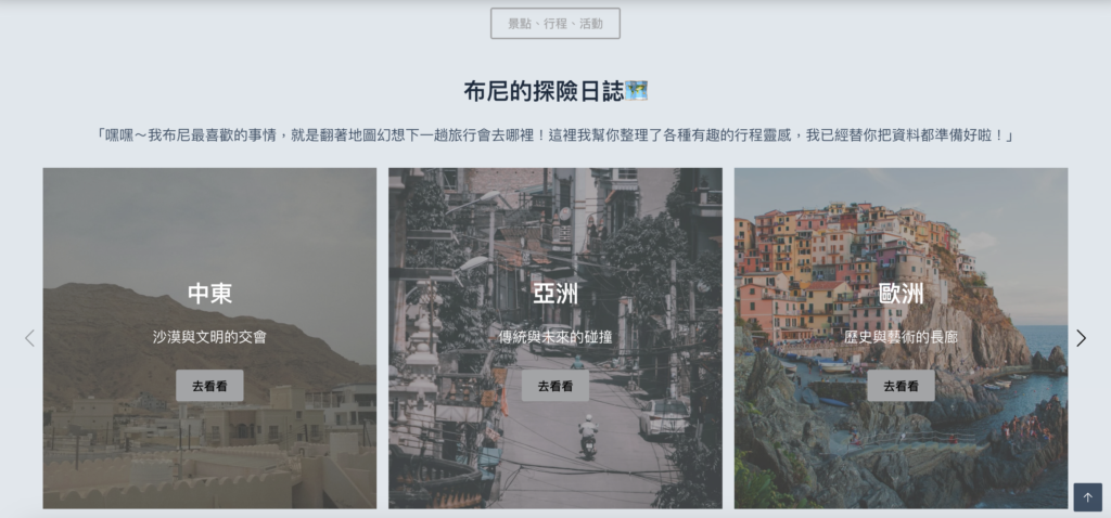 專案背景|旅行日誌部落格網站 就算還沒出發,也能先走一趟世界 這是一個以「陪伴式閱讀體驗」為核心的旅行日誌網站。希望即使使用者暫時沒有計畫旅行,也能透過故事、照片與互動設計,感受到旅途中那些冒險、新奇與沿途風景,彷彿跟著主角一起前行。網站以擬人化的主角角色作為敘事引導,風格可愛,降低閱讀門檻,也讓使用者更容易代入這趟旅程。整體體驗像是在翻閱一本旅行手記或地理讀本——透過精選影像與結構化內容,認識世界不同角落的人文故事與風景。 設計角色與貢獻 UX / UI 設計、WordPress 網站建置規劃整體網站體驗與閱讀流程(Story Flow)建立內容分類邏輯與資訊架構(行程 / 美食 / 住宿)設計 Desktop / Mobile 介面與 UI 元件規劃視覺互動(地圖導覽、區塊引導)使用 WordPress 建置網站,確保內容可維護性與擴充性考量 RWD 與實際內容更新情境,調整設計細節 問題分析與產品洞察 在分析既有旅遊部落格後,歸納出幾個常見問題:多數旅遊部落格以大量文字為主主頁資訊密集、閱讀負擔高,使用者需要花時間自行整理重點。影像雖重要,卻缺乏引導旅遊照片是最能快速建立情境與印象的媒介,但若缺乏結構與敘事,只會變成瀏覽而非體驗。內容豐富,卻容易迷路行程、美食、住宿交錯呈現,若沒有清楚的前導與順序安排,容易讓讀者產生迷惑感,即使內容精彩,也需要額外花力氣整理資訊。關鍵洞察:旅遊網站不只是資訊集合,而是「體驗的引路人」。好的結構與視覺引導,能幫助使用者在情緒與資訊之間取得平衡。 設計策略與關鍵決策 1. 體驗定位:像一本 Handy 的電子旅行手記將網站視為可隨時翻閱的旅行書,而非一次看完的長文強調「陪你慢慢看世界」的節奏,而非效率導向2. 閱讀流程設計(UX Flow)依照使用者進站後的心理狀態,安排閱讀順序:前導故事:建立情境與情緒主角出場:透過角色降低距離感精選開場照片:快速帶入旅遊氛圍溫馨叮嚀:提示閱讀與探索方式視覺化地圖導覽:提供控制感,讓使用者選擇接下來想探索的內容 3. 視覺與資訊呈現以大比例精選照片作為第一印象,提升沈浸感文字作為照片的補充與延伸,而非主角主頁清楚區分「行程 / 美食 / 住宿」區塊,降低搜尋成本 4. WordPress 結構規劃以分類與標籤建立可延伸的內容架構確保未來新增旅程時,不需重構整個版型設計模組化區塊,讓內容更新保持一致性 成果與回饋 建立一個以體驗為導向的旅行日誌網站,而非單純資訊堆疊使用者可在短時間內被視覺吸引,並依自身興趣選擇探索路線網站成功傳達「世界很大、值得期待」的情緒價值即使沒有立即出發計畫,也能在閱讀中感受到旅行的美好與多元性這個專案也驗證了:良好的 UX 結構與視覺引導,能讓內容本身更容易被理解與記住。 去看看網站 🔍